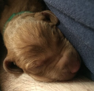 Farrell at about 7 weeks. He’s on the left with the blue collar)