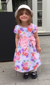 Mother’s day outfit, complete with hat. (Thankfully you can’t see the chocolate milk stain.)