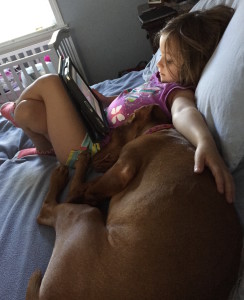 So, yeah, I’ve been bad. No real picture update for months. (Some of you I’m sure are thing – thank the Lord!) So these span Easter, Mother’s Day, the puppy’s birth, a slew of birthday parties, strawberry picking, a Father’s Day concert, baseball games (though I’m not sure ‘lil q knows they played a game, she goes for the eats and carousal rides), a summer of field trips, the first year of soccer and a few other odds and ends. It also shows the progress of the puppies – Lindsey and Farrell (Mike named him for the main character in my Champion of the Gods series.) You think kids grow fast, fuhgeddataboutit. Dogs run laps around kids.