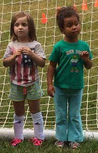 1st day of soccer practice is less scary with a friend.