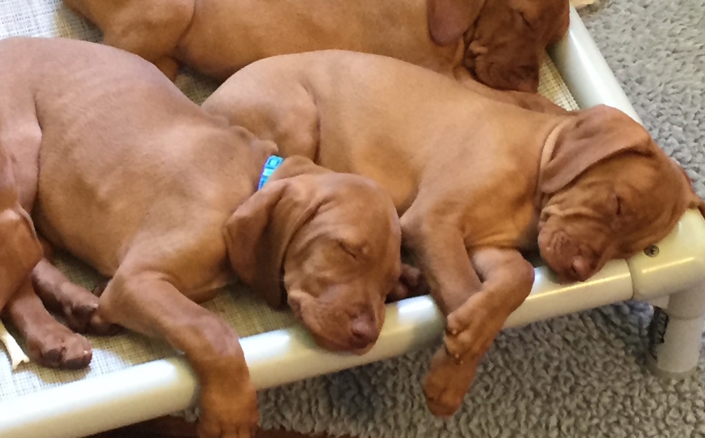 Farrell at about 7 weeks. He’s on the left with the blue collar)