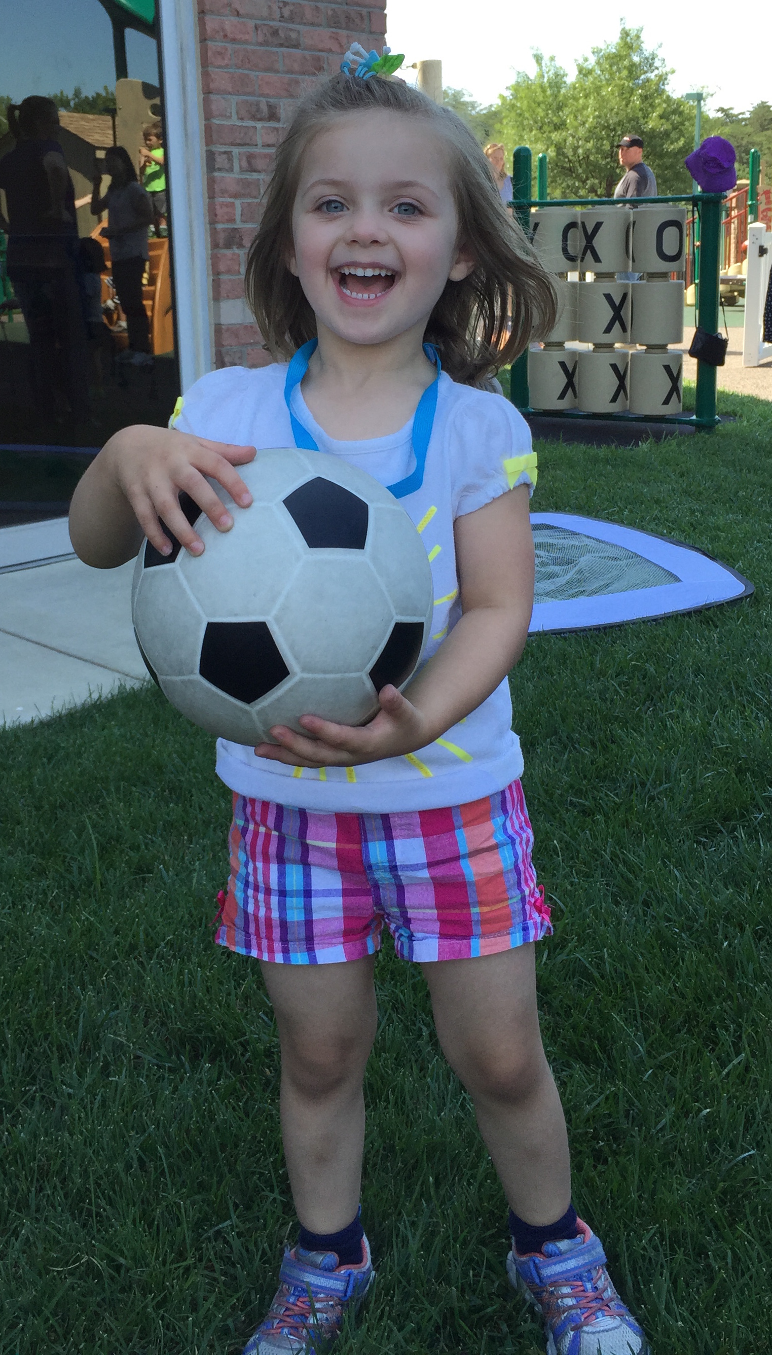 With her medal after the game, but before the cake. 🙂