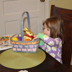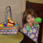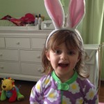We’re almost to the point where ‘lil q is hip to all the holidays. Despite mentioning it several time that the Easter Bunny was coming today, he needed a bit of prompting to remember. But once she did, she was all into it. So after getting up we put on our bunny ears (that didn’t even make it down the stairs before they fell off) and down to look for our basket, then breakfast. (Yes, I let her have chocolate before we ate, I’m not a total ogre. )