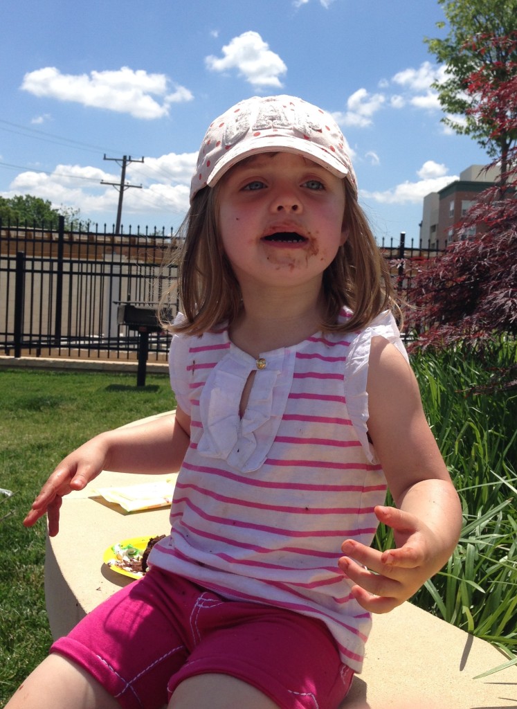 Then we have cake. On a hot day, chocolate cake gets everywhere.