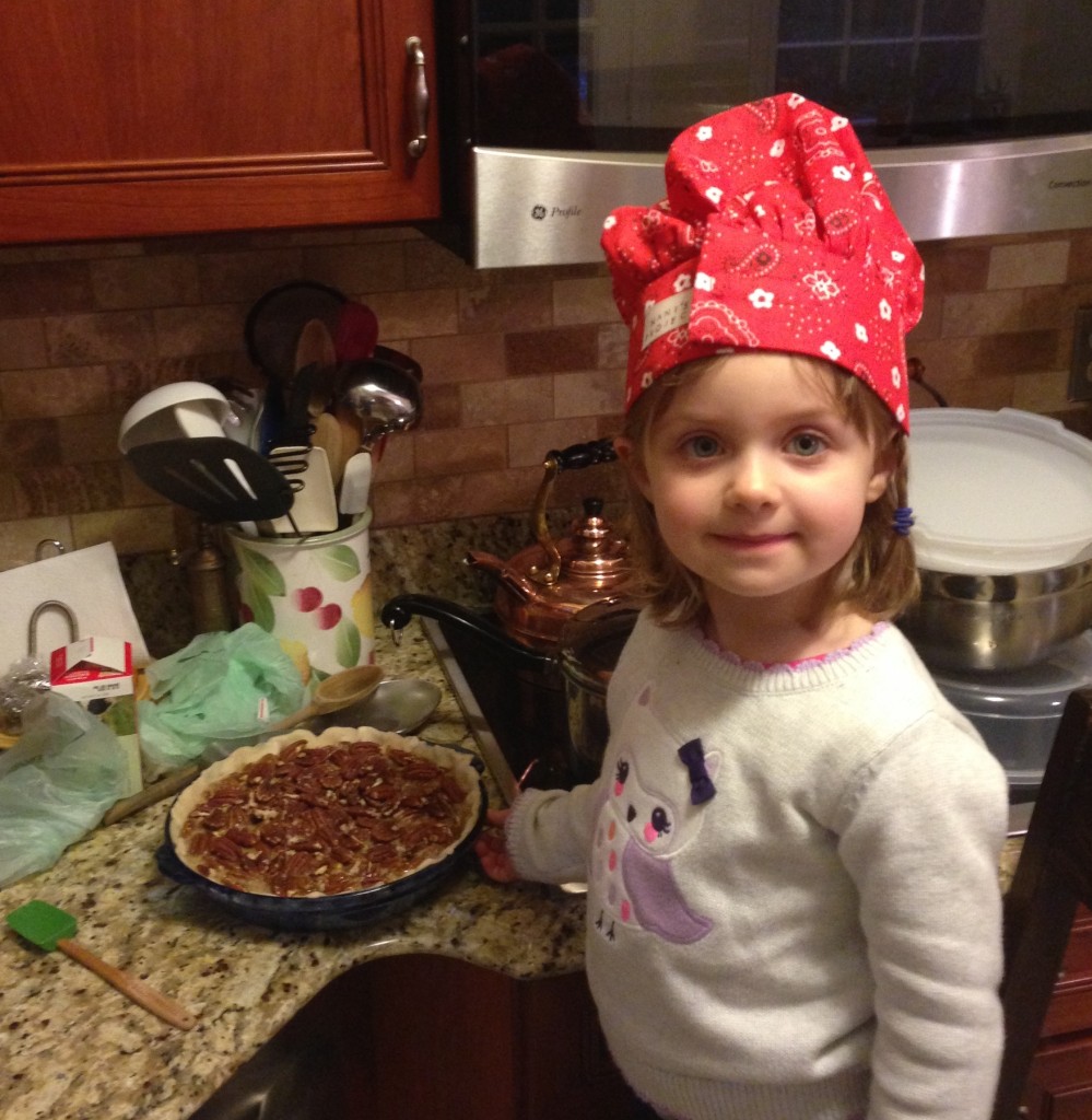 Chef ‘lil q helping make the pecan pie for Thanksgiving.