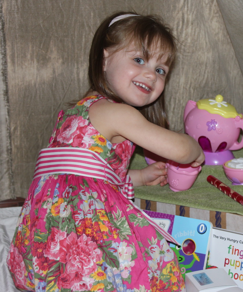 Teepee seems very large inside. Looks like she’s having a blast playing in it.